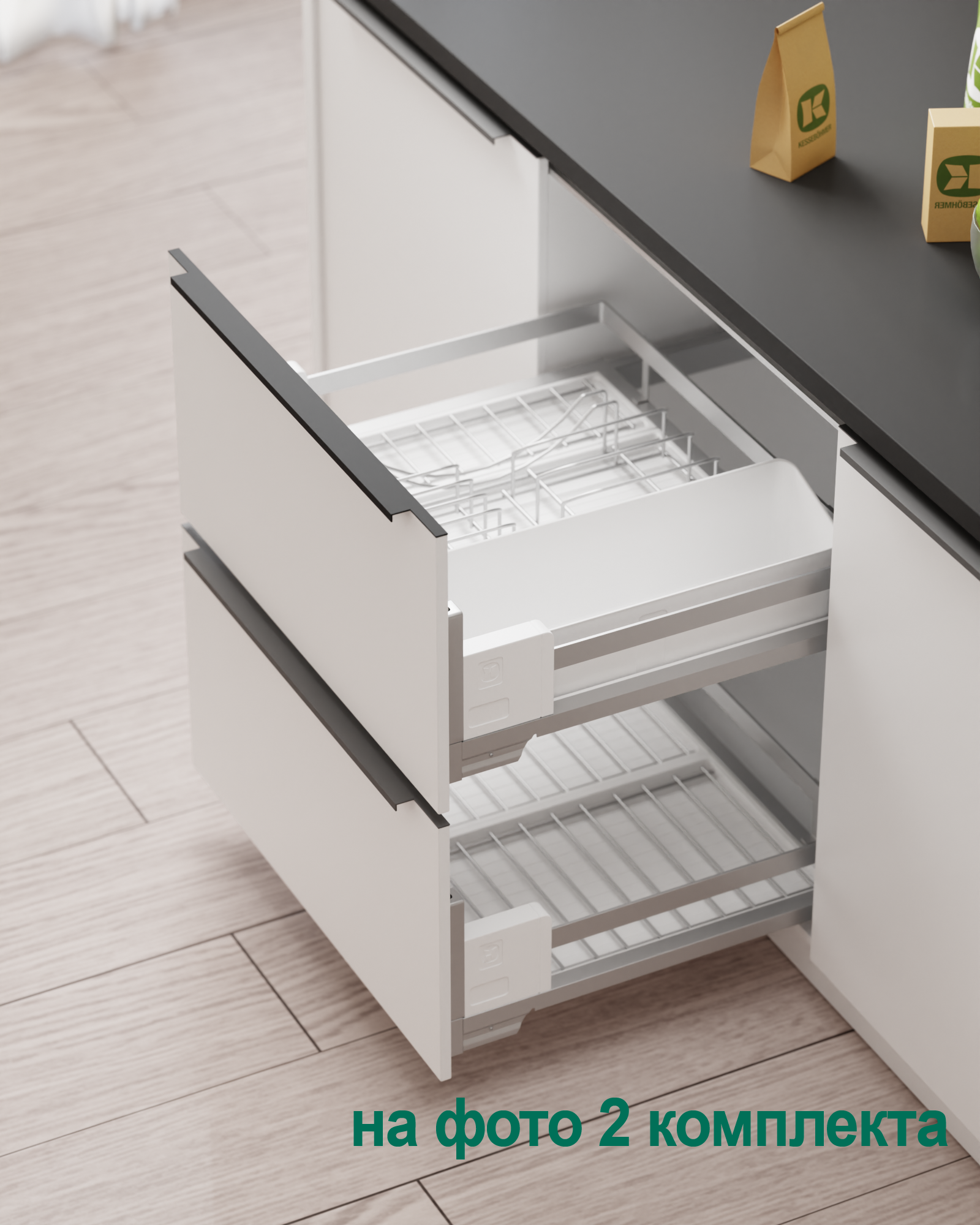1 для посуды большой (423 x 248 мм, состоит из 1 х держатель металлический, 1 х поддон пластиковый, 2 х защелка-ограничитель)