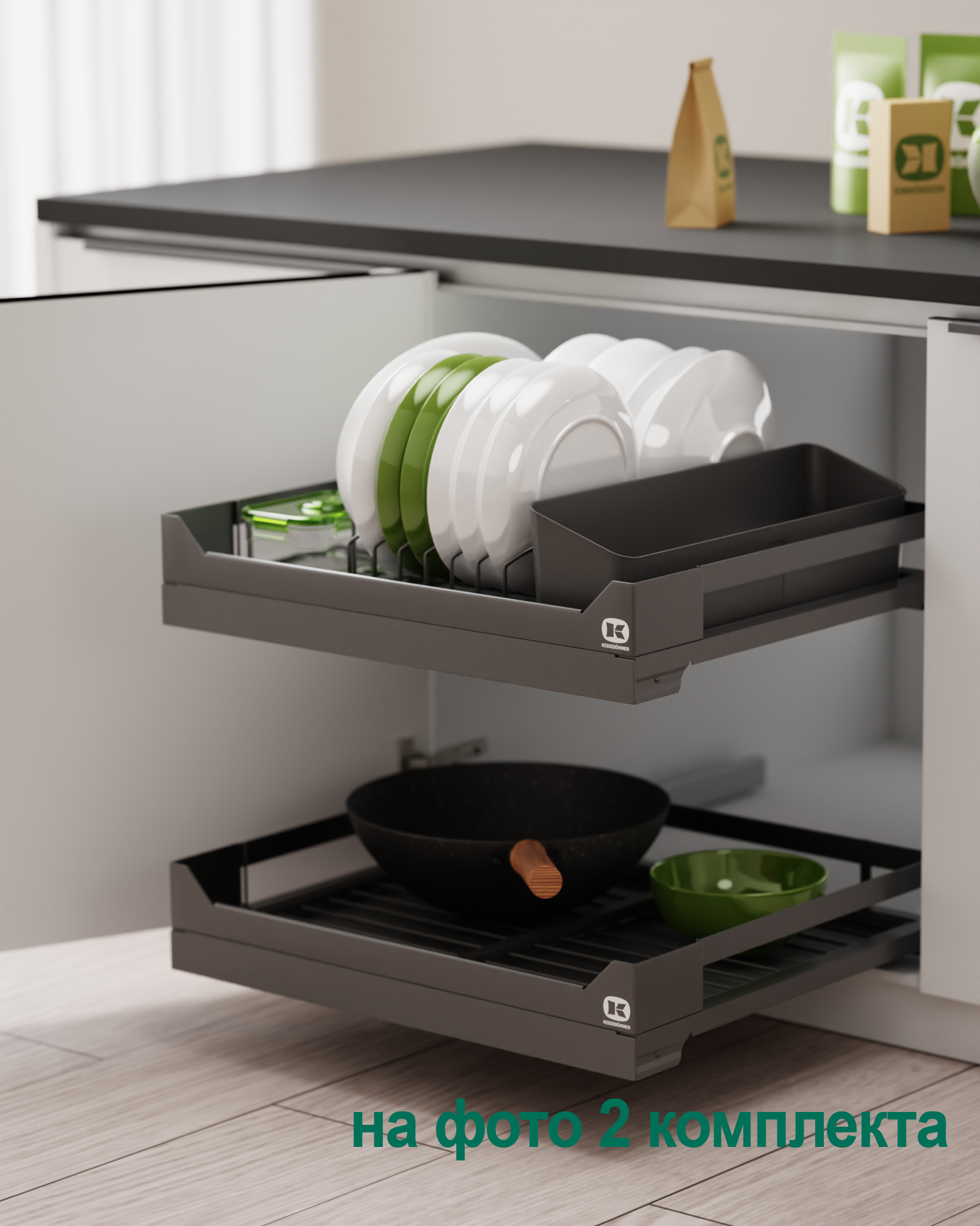 1 для посуды большой (423 x 248 мм, состоит из 1 х держатель металлический, 1 х поддон пластиковый, 2 х защелка-ограничитель)