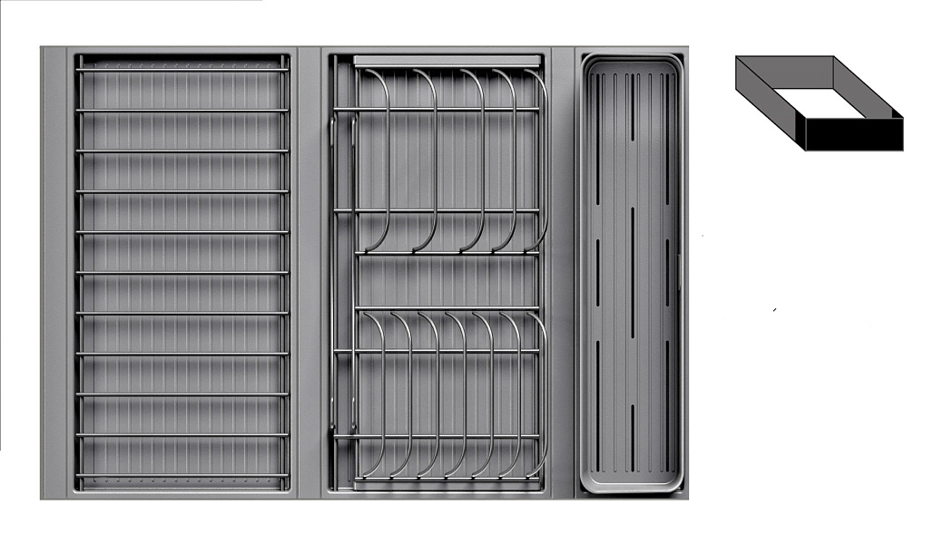 1 для столовых приборов (состоит из: 1 х емкость пластиковая 400 х 100 х 120 мм, 1 х поддон пластиковый 423 х 124 мм)