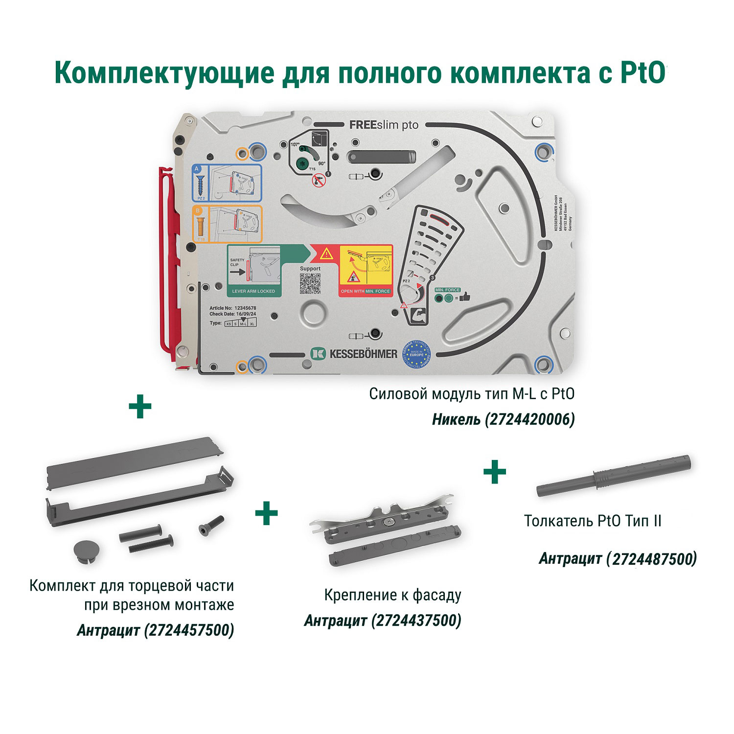 Полный комплект подъемного механизма ФриСлим ФЛАП c толкателем PTO тип II для врезного монтажа, цвет АНТРАЦИТ Kessebohmer | официальный магазин