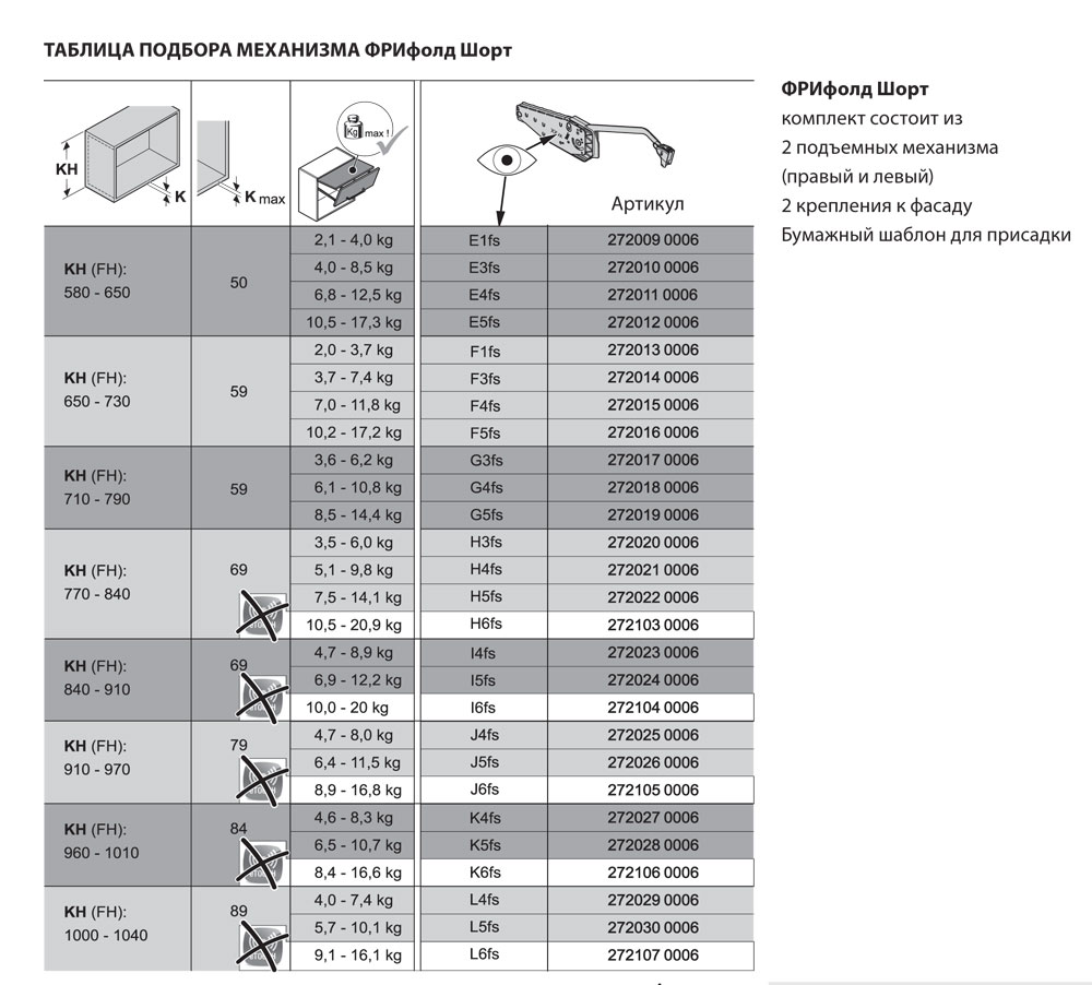 Подбор подъёмных механизмов Kesseböhmer