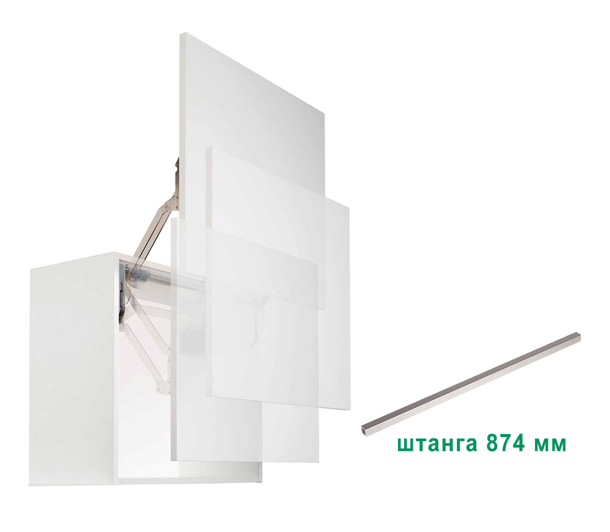 При выборе максимальной ширины фасада 1000 мм в комплект добавляется штанга 874 мм