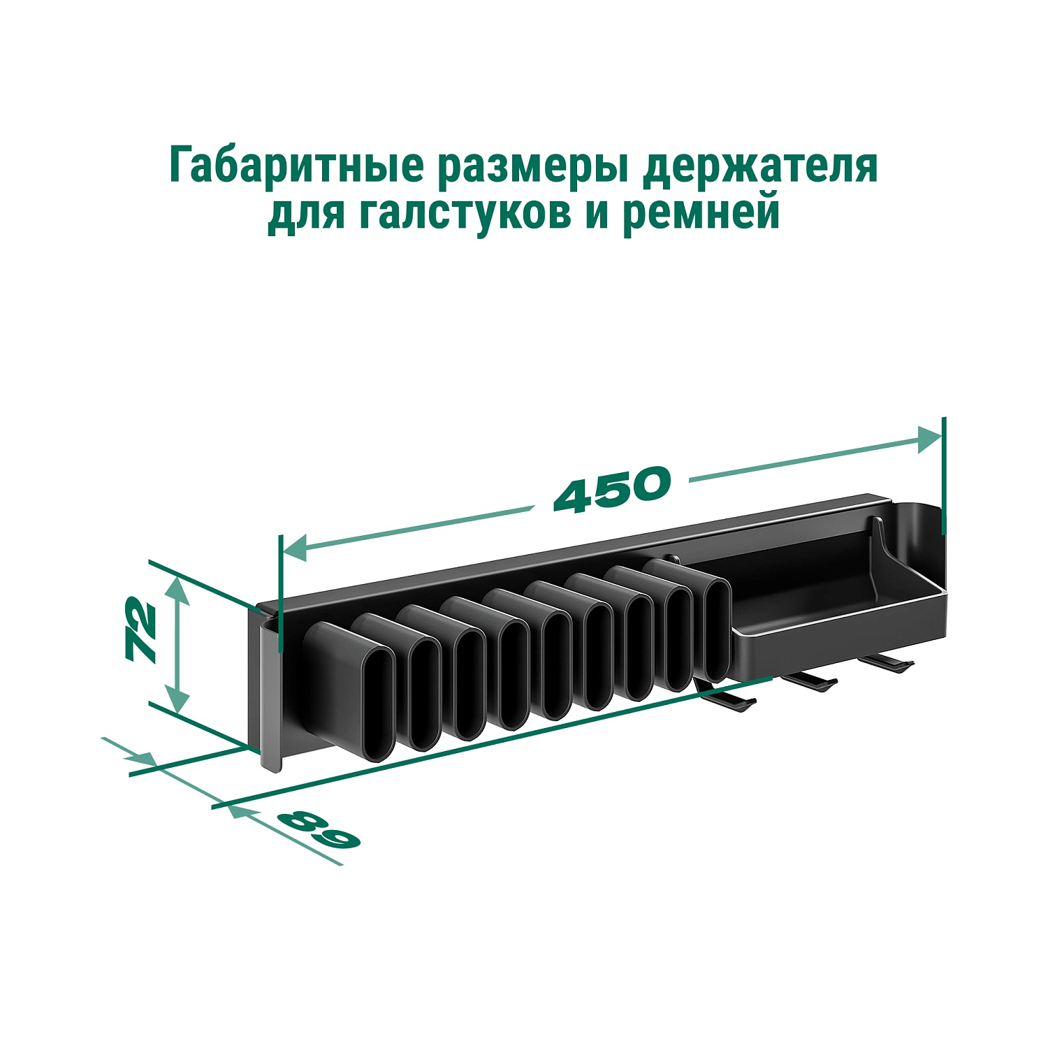 —Держатель для галстуков и ремней с полочкой выдвижной 450 мм Конеро D 475 мм цвет ЧЕРНЫЙ Kessebohmer