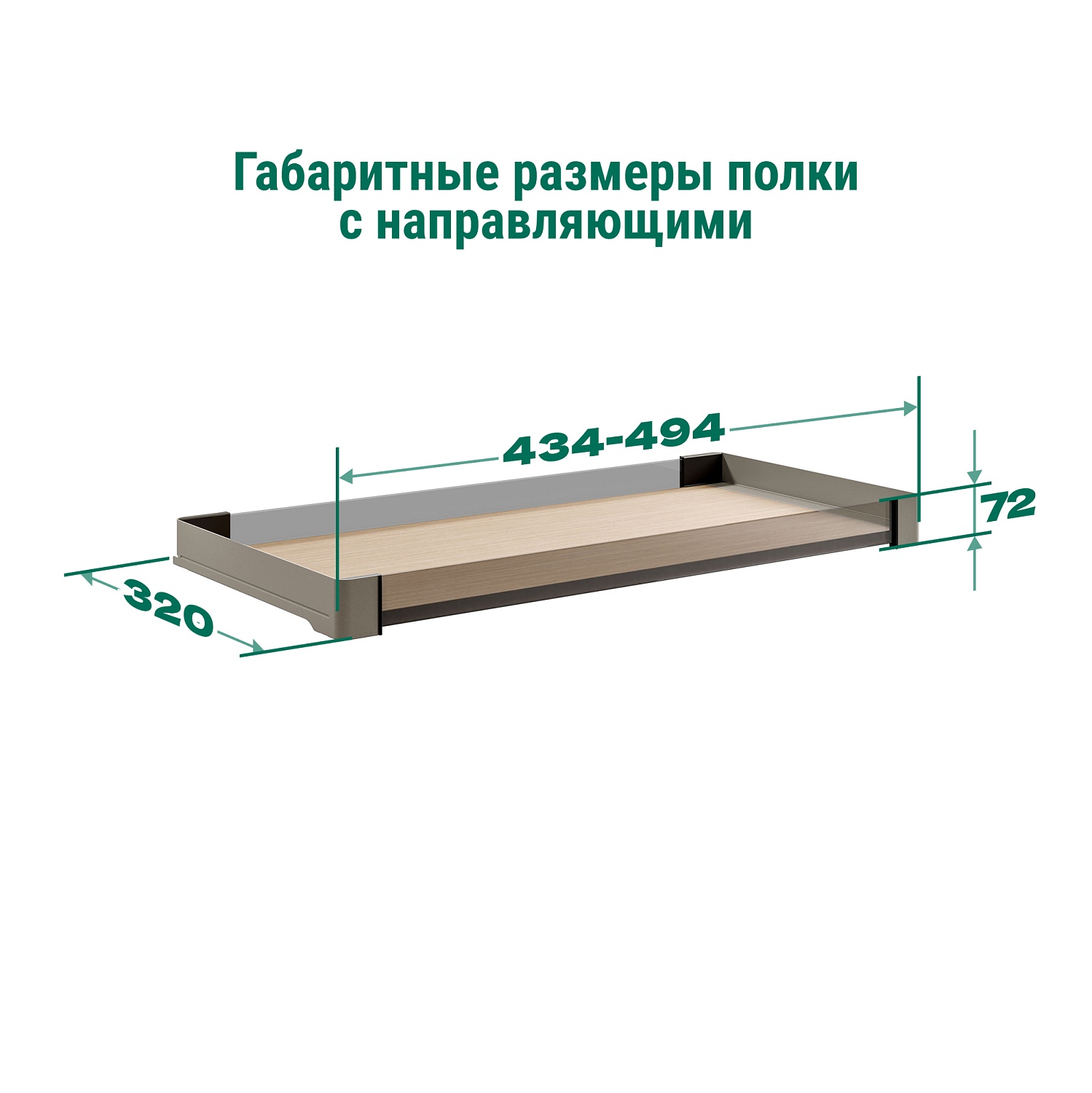 Полка внутренняя выдвижная 320 мм, Конеро, H 72, без дна, передней и задней стенок, 1 шт, цвет ШАМПАНЬ